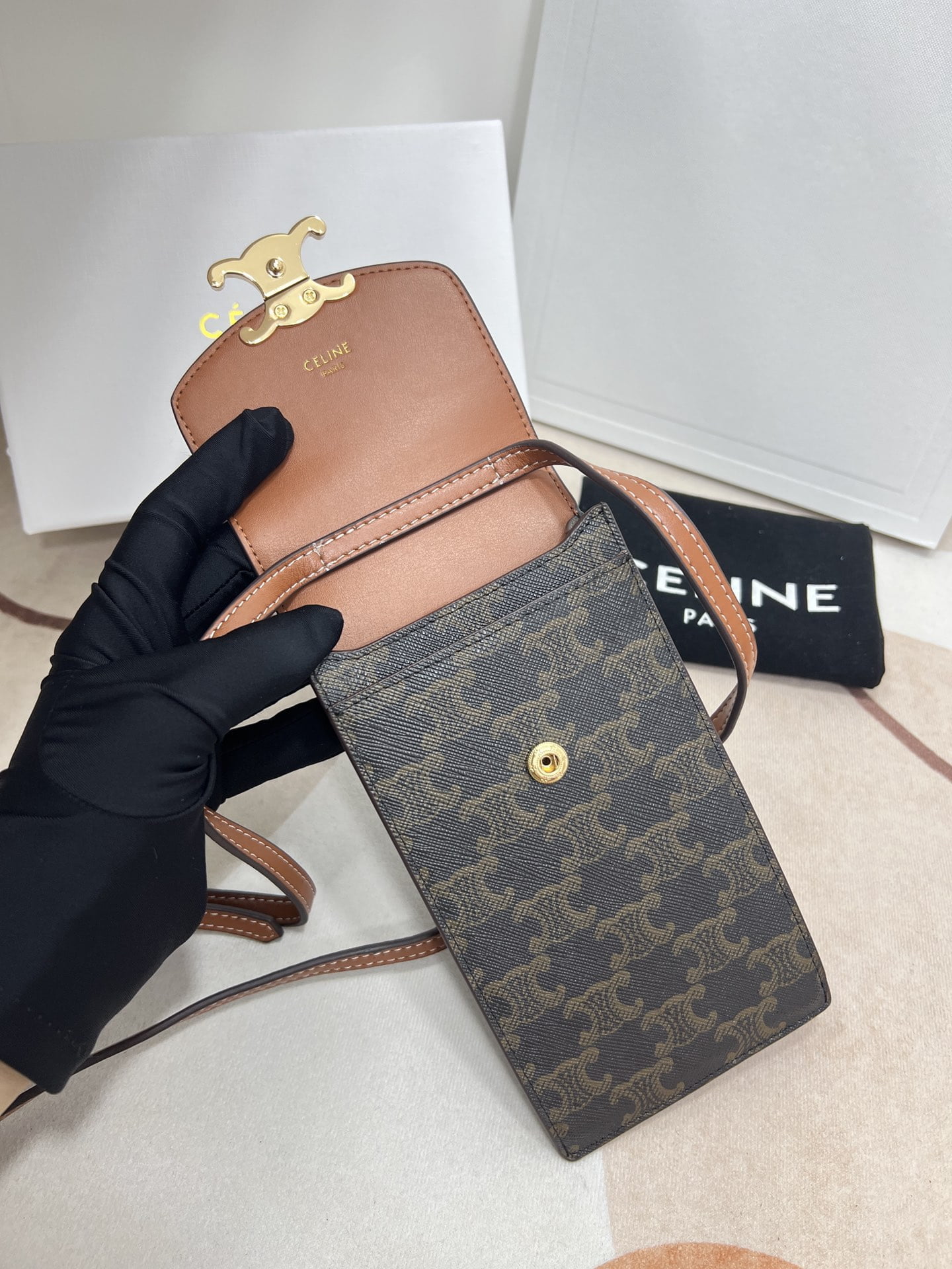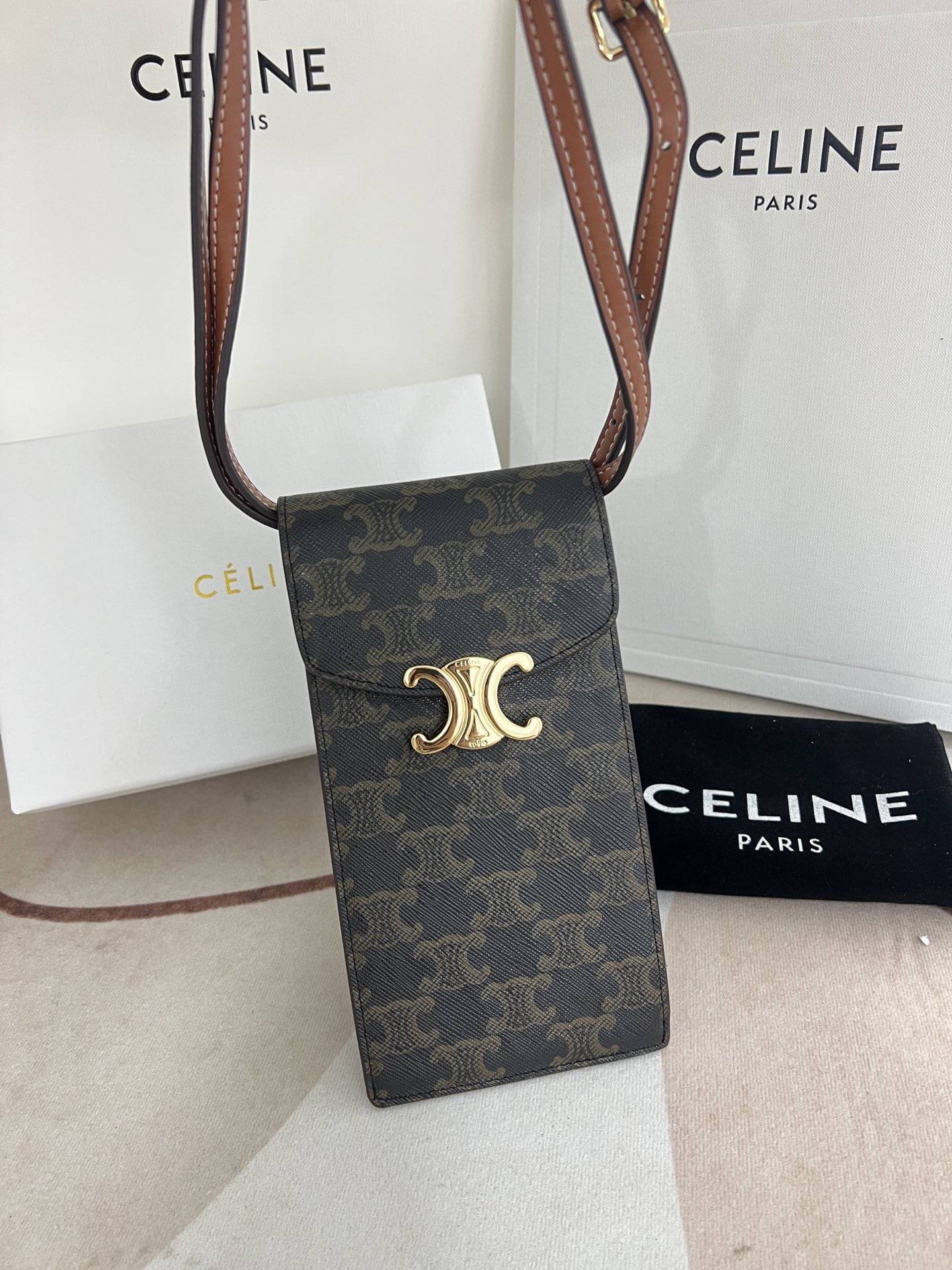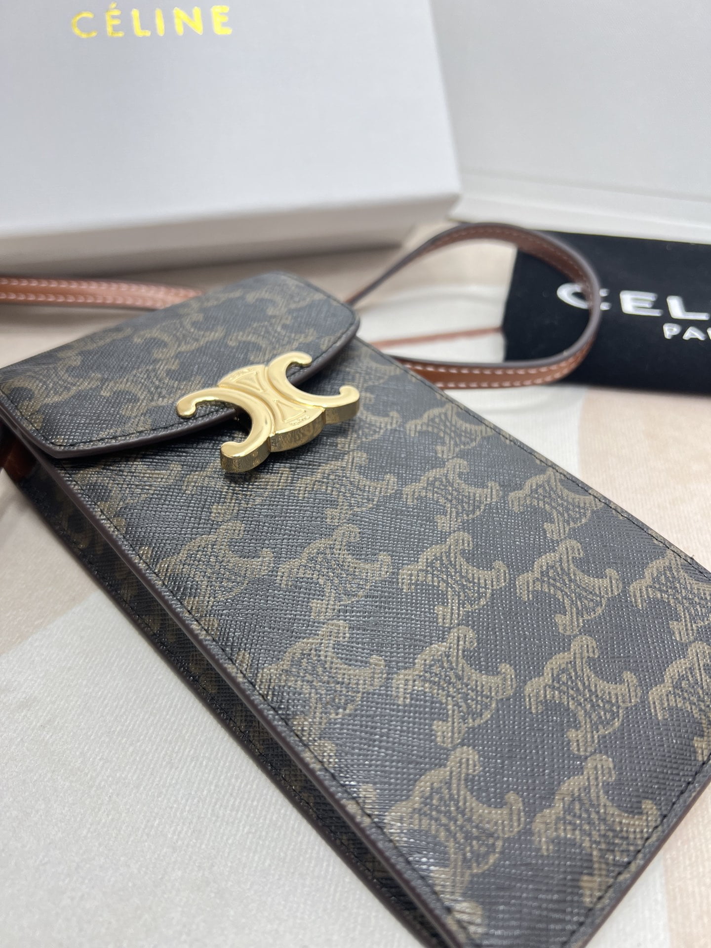 CELINE Mobile phone bag with leather strap Size: 10*2*19cm