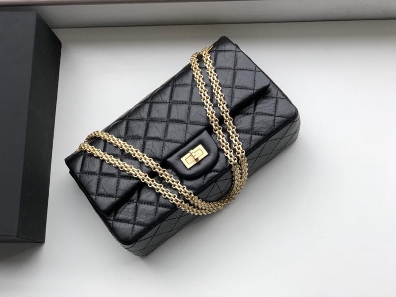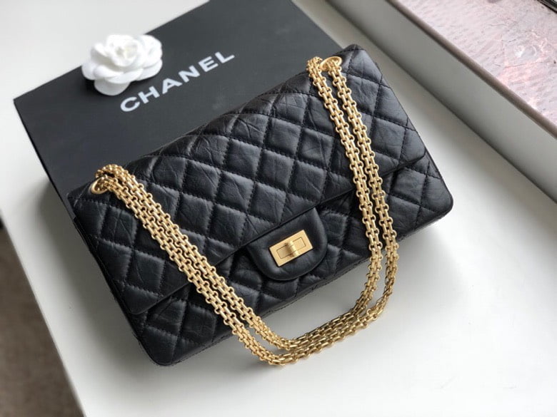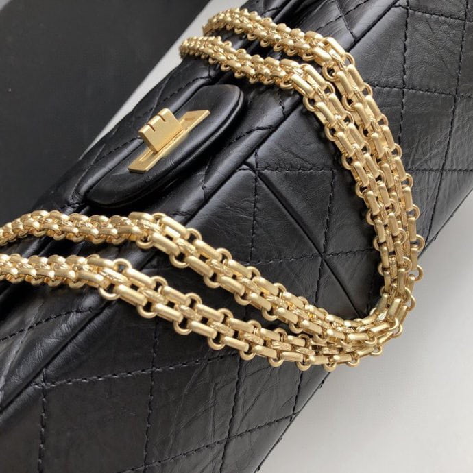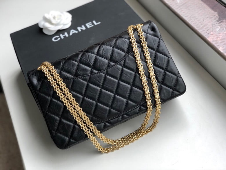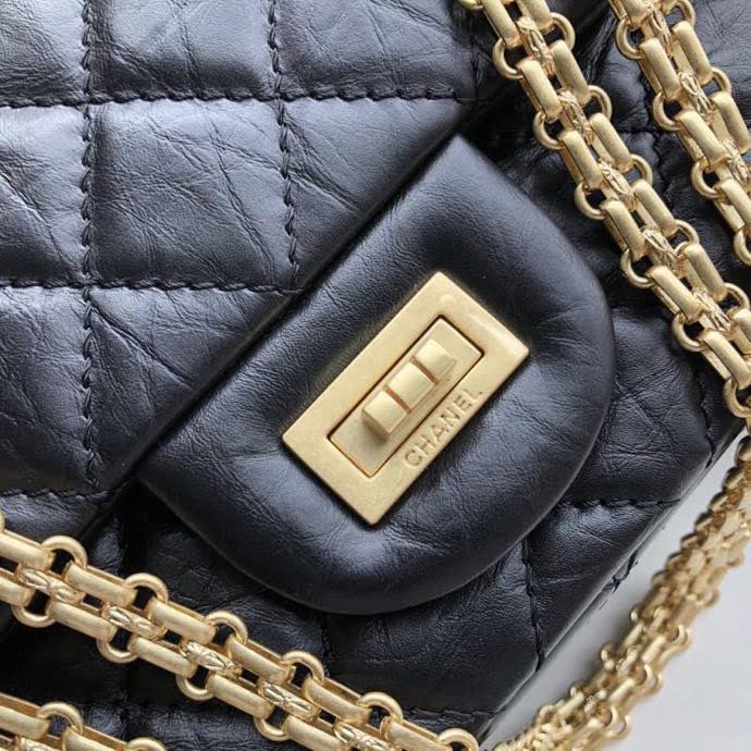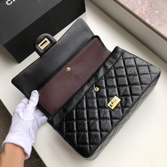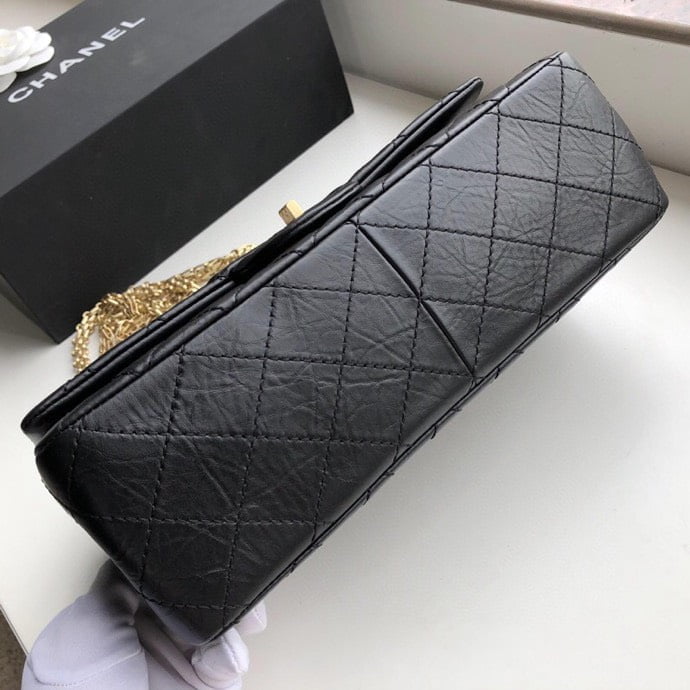 CHANEL / 2.55 HANDBAG Aged Calfskin & Gold-Tone Metal Black Ref. A37586 Y04634 C3906 size:28cm