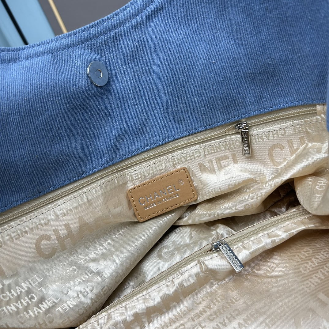 Chanel ramie cotton denim shopping bag beach bag size: 33* 32cm
