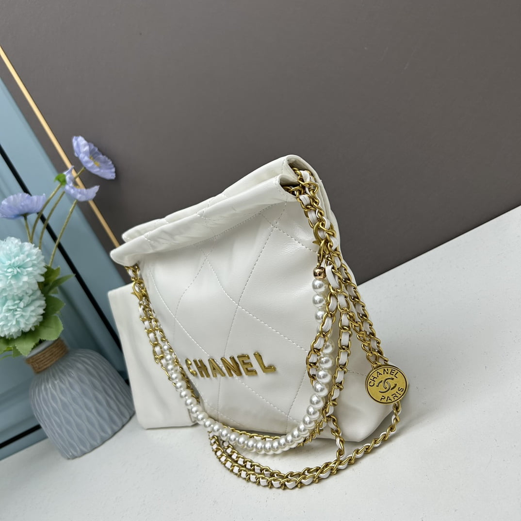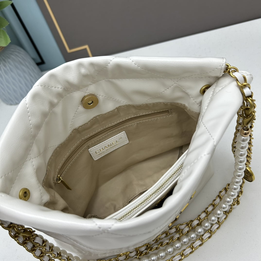 CHANEL Pearl garbage bag white size: 23*28*22*7cm