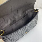 【FENDI】 Fendi’s latest geometric clamshell mini handbag with hardware accessories including the Fendi logo. Adopts the button opening and closing type, with two detachable inner bags – one with zipper, one with 8 card slots. Detachable chain strap. Lining with flat pockets. Black hand relief FF print. Gold metal pieces;