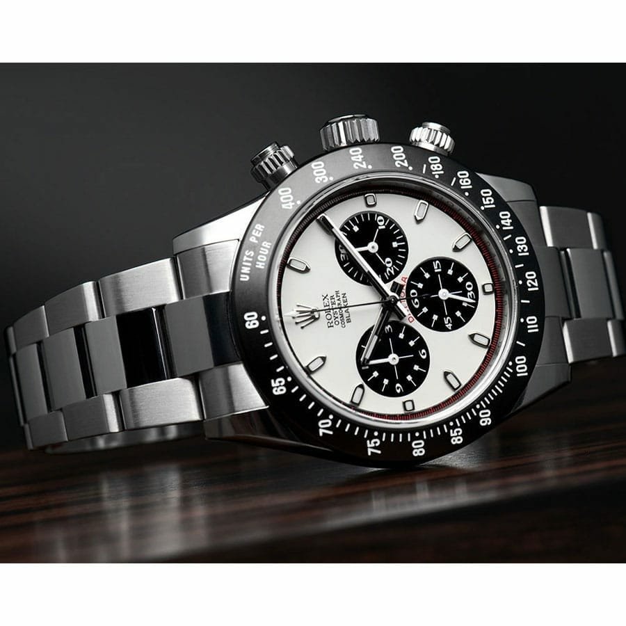 Immerse yourself in the luxurious essence of timeless craftsmanship with the Rolex Blaken Daytona Cosmograph Replica. This exquisite timepiece brings together the pinnacle of haute horlogerie and meticulous attention to detail. all in a replica that mirrors the grandeur of the authentic model. Picture this: the gleaming 904L stainless steel case and bezel. paired with a striking black bezel color that effortlessly complements the pure white dial. The dial captures the eye with its elegant stick and dot indices. and the precision-engineered stick hands made from the same high-grade 904L stainless steel. This is not just a watch; it’s an experience. an artifact of unparalleled sophistication that promises to turn heads and spark conversations.